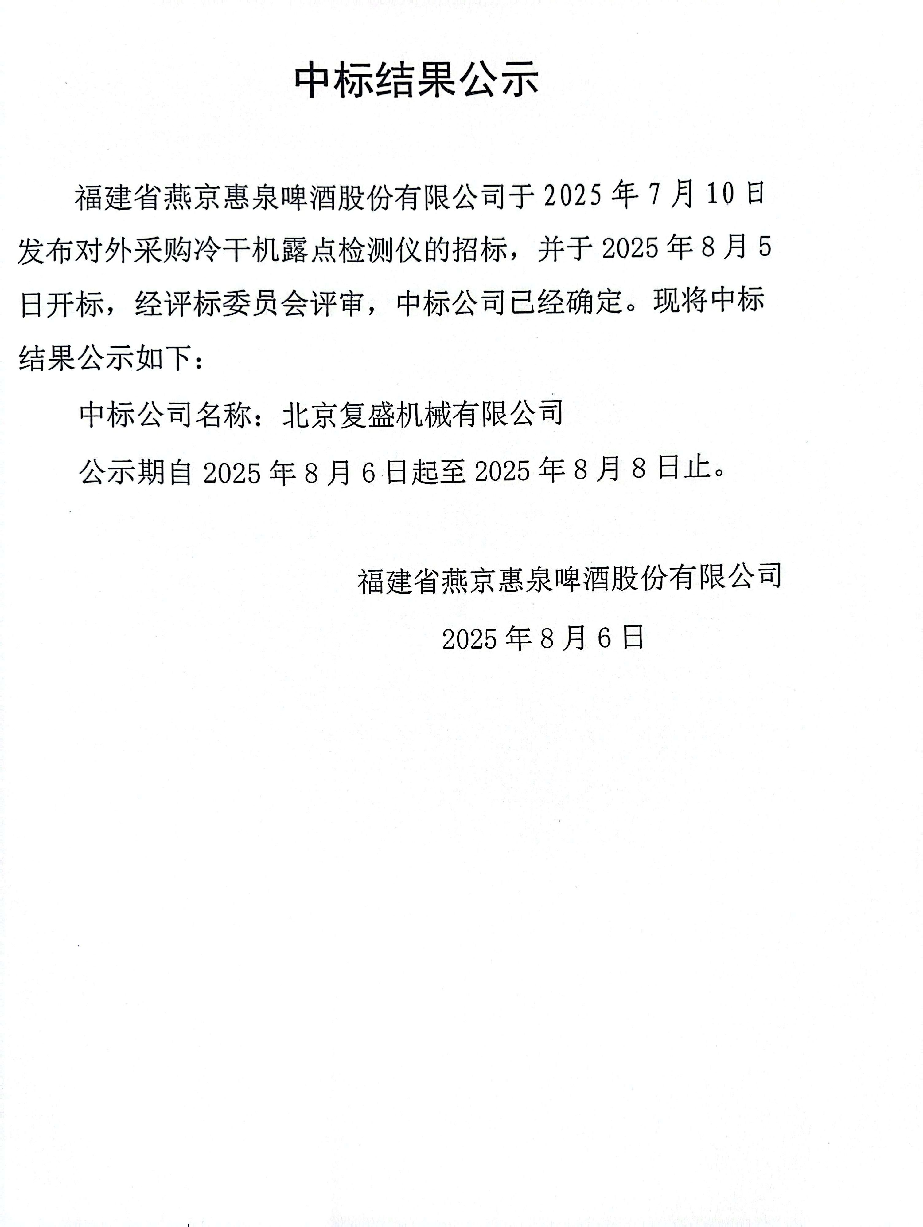 :福建省燕京惠泉啤酒股份有限公司 基建工程设计项目招标公告