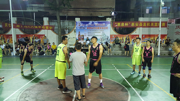 6月29日晚上七点,“庆七一迎十九大、共建平安惠安”——“惠泉”杯惠安县直机关篮球赛,在惠安县工人俱乐部灯光球场举办开幕式,惠安县文体局陈亚健局长到场参加并为运动员抛球开赛。本次大赛由中共惠安县委直属机关工作委员会、惠安县文化体育新闻出版局主办,福建省燕京惠泉啤酒股份有限公司承办,包含燕京惠泉公司篮球队共有18支代表队分成4组参赛。很多惠安市民早早来到球场,为运动员们的精彩表现加油喝彩,共享这场篮球爱好者的盛会。