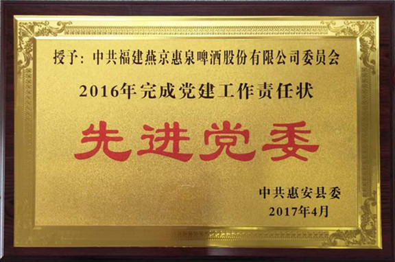 日前,公司党委被中共惠安县委授予“2016完成党建工作责任状先进党委”。