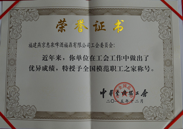 近日,中华全国总工会授予福建燕京惠泉啤酒福鼎有限公司工会“全国模范职工之家”称号,此项荣誉是全国工会系统表彰先进集体的荣誉,也是国家对基层工会工作的褒奖。