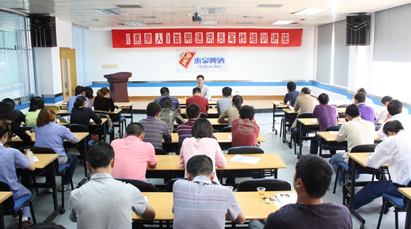 陈新华副总首先就首次通讯员培训讲座进行了动员,他从企业报刊与企业文化的关系及其重要性方面,讲述了此次培训的重要意义。要求基层通讯员要善于用心观察,善于从工作总结中捕捉信息要点,把握动态信息,特别要针对公司绩效管理中涌现出的先进人物进行采写,增加《惠泉人》期刊的先进性和典型性引导力,使《惠泉人》真正成为企业增强凝聚力和向心力的重要途径,成为企业提高员工忠诚度,加强团队协作的平台,成为强化企业文化建设,提高美誉度的有效工具。