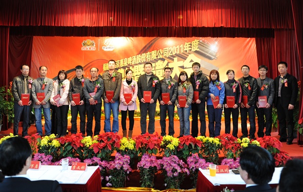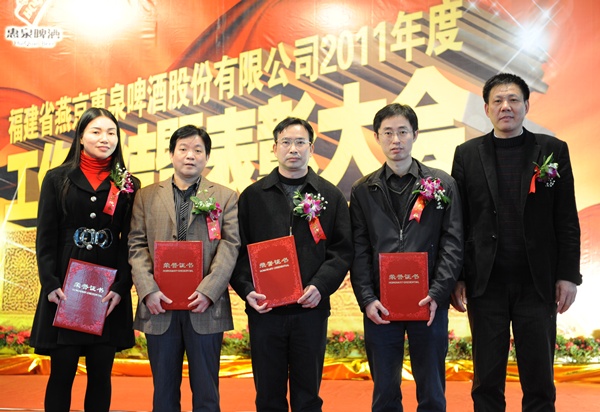 营销系统绩效先锋办事处、生产技术管理系统绩效先锋班组:惠安办事处、南安办事处、鹰潭办事处、保安部南中队四班、公关部小车队、南厂动力车间制冷CO2班、北厂包一车间一线一班、北厂包二车间三线一班、北厂包二车间五线二班、北厂动力车间制氮工段、北厂酿造车间糖化工段