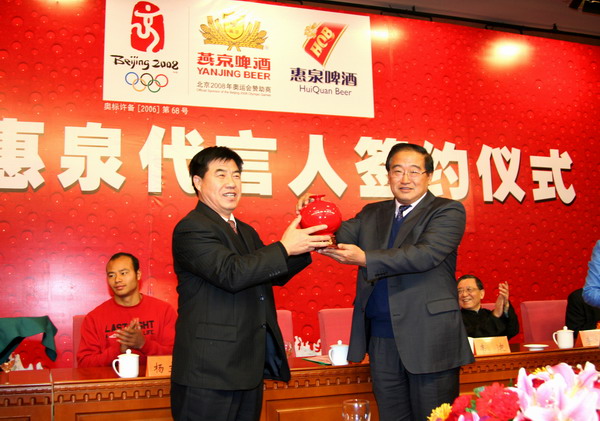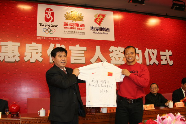 12月9日上午,公司在北京市昌平区金池蟒山会议中心举行了惠泉品牌形象代言人签约仪式,雅典奥运会双人皮划艇冠军杨文军以其品牌形象代言人的身份亮相,引起各方强烈关注。