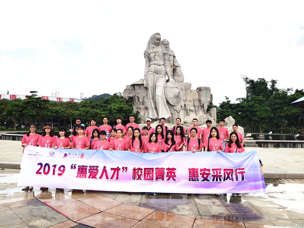 8月26日上午,由惠安县文化体育和旅游局、共青团惠安县委等单位组织的惠安籍在校大学生----“惠爱人才”校园菁英采风团一行来到燕京惠泉公司采风,台风“白鹿”的余威影响不了校园菁英们的热情,偌大的惠泉惠女广场上到处可见他们打伞详观的亮丽身影。
