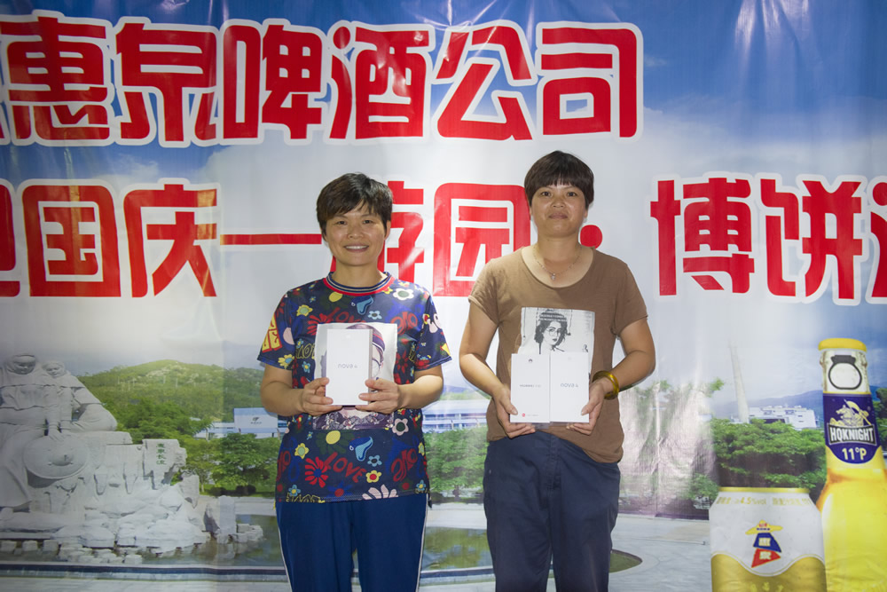紧接着公司级博饼开始了,这可是“王中王状元”PK赛的入场券,经过激烈的角逐又有十几位“公司级状元”产生了。最激动人心的还数“王中王”PK赛,大家似乎看到华为手机在招手了,“一秀、二举、三红、四进……”喝彩声、鼓掌声、欢笑声此起彼伏,共同演奏着一曲欢乐和谐的中秋交响乐。经过一番欢乐激烈的大比拼,安全保卫科的何琼珍手气爆棚地摘得“王中王的榜眼和状元”,获得了华为手机2部;包一车间的连凤英摘得另一个“王中王的榜眼”,获得了华为手机1部。
