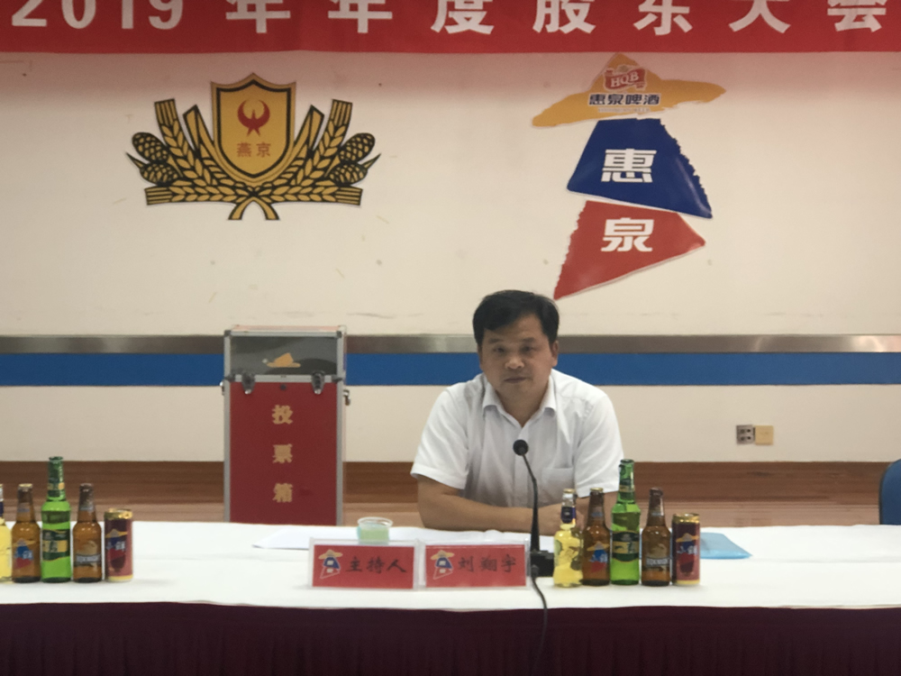 会议最后,刘翔宇董事长作会议总结发言。他首先感谢公司股东及股东代表、董事、监事、律师参会及对公司长期的支持与帮助。他说,今年年初暴发的新冠疫情对啤酒行业造成较大的影响和冲击,但随着消费复苏,公司及时调整措施,紧盯市场和紧抓销售。目前,公司产品销售提升可喜。公司正按照年初制定的经营方针逐步落实,各项工作有序推进,公司也有信心克服疫情影响,实现年初制定的产品结构进一步优化、重点市场取得明显突破、销量可持续稳定增长的年度经营目标。
