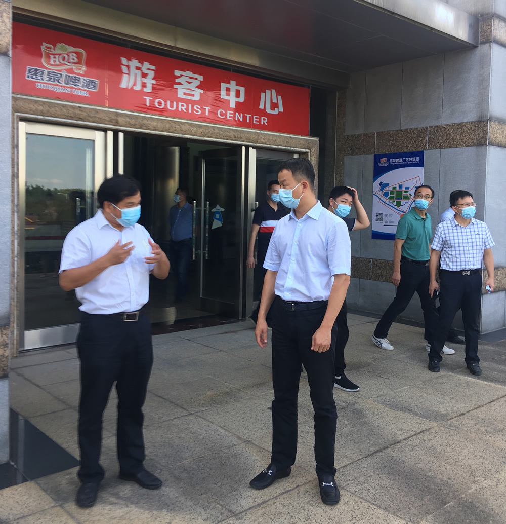 9月24日下午,惠安县委书记王春雷、副县长雷小全及县委办、统计局、工信商务局、防控办等单位主要领导莅临燕京惠泉啤酒公司调研新冠疫情防控工作,公司党委书记、董事长刘翔宇,常务副总经理、财务总监王岳,常务副总经理陈济庭,党委副书记、工会主席陈新华等领导陪同调研。