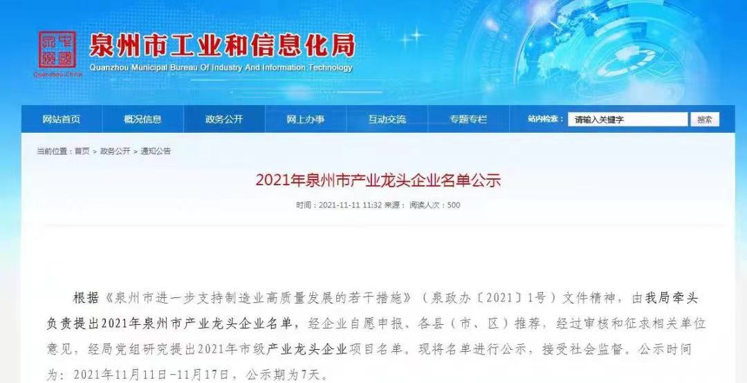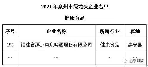 此次入选企业涵盖健康食品、电子信息、石油化工、机械装备等行业领域。作为蝉联 “泉州市级产业龙头企业”称号的惠泉啤酒,本次上榜给行业树立了良好的典范。