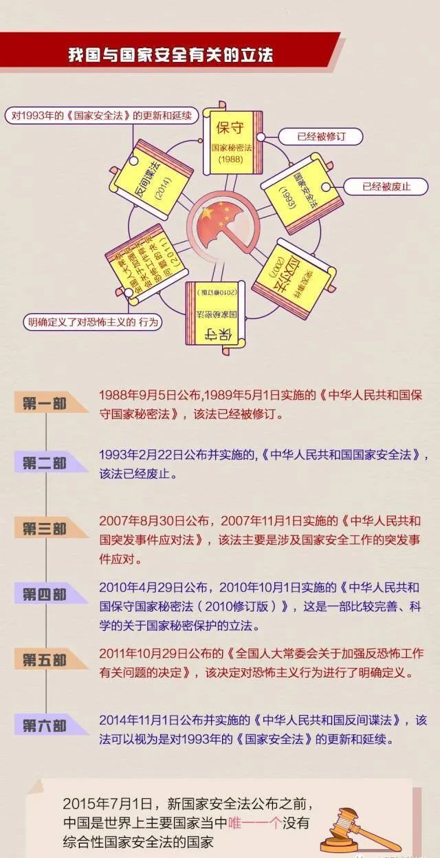 维护我国国家安全,是中国特色社会主义建设事业顺利进行,实现国家长治久安和中华民族伟大复兴的重要保障。新中国成立后,为应对严峻复杂形势,我国制定了一系列维护国家安全的法律法规,对维护国家安全发挥了重要作用。党的十八大以来,为适应我国国家安全面临的新形势、新任务,以习近平同志为总书记的党中央提出了总体国家安全观,强调全面维护各领域国家安全,对加强国家安全工作和国家安全立法作出了重要部署。按照中央部署和贯彻落实总体国家安全观的要求,适应我国国家安全面临的新形势、新任务,2015年7月1日第十二届全国人大常委会第十五次会议审议通过了《中华人民共和国国家安全法》。